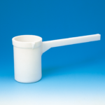 ■ 小型のオールPTFE製で150mmの固定取っ手付き。注ぎ口は左右2カ所ありますので右手、左手どちらでも使えます。
