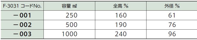 F-3031-001 PFAガス洗浄瓶 250ml 90,000 3 無くなり次第販売終了