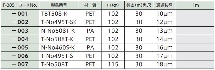 F-3051-001 | ナイロン&ポリエステルマイクロスクリーンTBT508-K 10μm 1m | 67,600 | 77,800 | 通常9~12日間 |